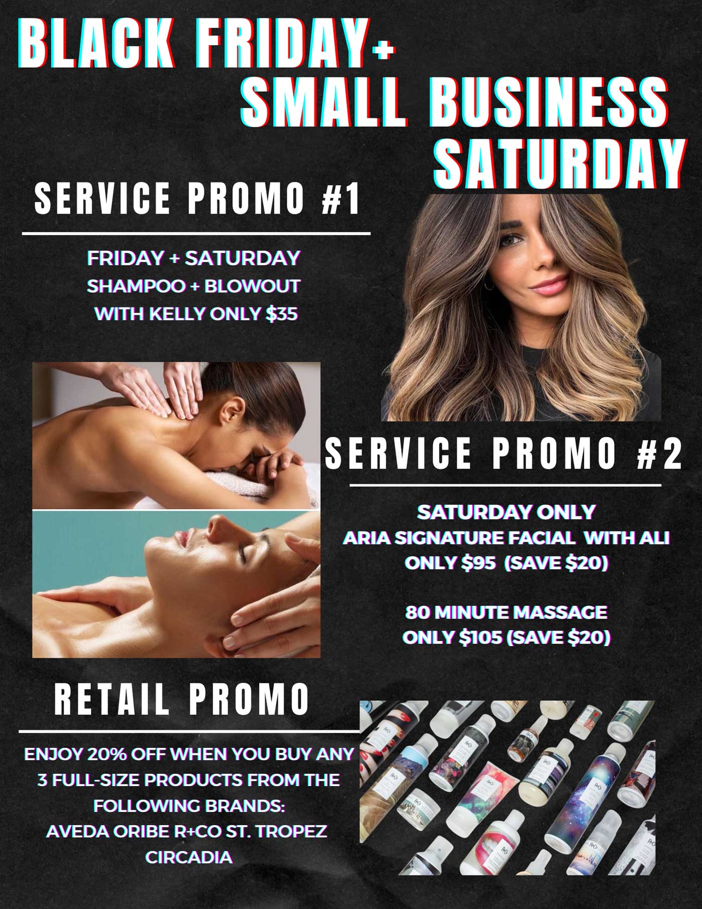 - Aria Salon & Spa has some can’t miss Black Friday and Small Business Saturday Deals. See below!Â